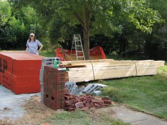![]() When the guy came to pick up the left over lumber, he put it crosswise on his forklift -- 12' wide. I wondered how he would get through the 8' gate. |