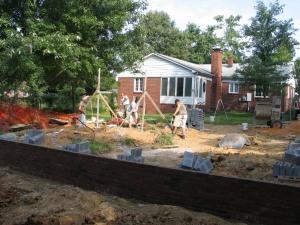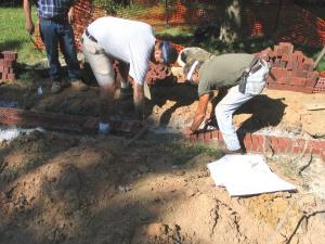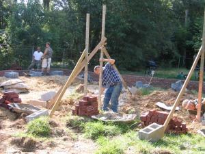 The masons show up at 7:45 to start on the foundation. Patricia's just stirring and I don't think anything about it until a neighbor comes by to say just their talking is disturbing his kids. A couple days later he apologizes for being testy. Last spring he was doing construction while Patricia was convalescing and he had no idea how early his workers started. I'm impressed that it takes 3 helpers to keep up with 3 masons. Just like a doctor, they were saying "I want 12 bricks here" and "move that mortar tray a foot closer." |