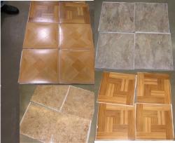 I decided I could buy vinyl tiles for his allowance and then install them myself. We chose a grade for about $1/sq ft and started looking at patterns. I found exactly what I wanted ... in a solid vinyl that would require a thinset adhesive. OK, let's look at self-stick tiles. They're about the same price and there are a few satisfactory designs (most are appropriate for a trailer's kitchen). I bought a few single tiles and brought them home to think on. We were finally going to make a decision "this week", so we went to the store and took pictures of some masses of likely candidates. But we're still not convinced because the self-stick tiles will need a